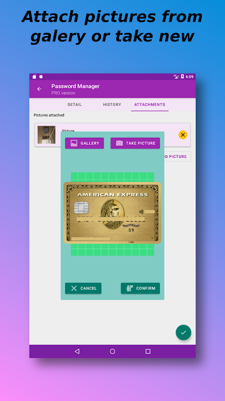 There is the possibility also to take pictures of yours cards or any other document and keep them safely encrypted without any intentional evil being able to take over your identity.