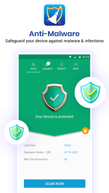 ✔ Malware Protection : Antimalware protects your phone device against Malware attacks and infections