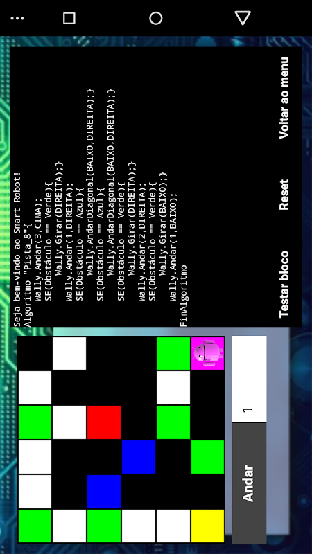 O Smart Robot é um aplicativo destinado a quem deseja começar a estudar lógica de programação. Baseado em uma interação prática com o usuário, o aplicativo mostra as possíveis interações que um sistema pode ter com algo real. Ao percorrer as pistas com o robô, esperamos que o usuário compreenda os comandos lógicos que simulam seu deslocamento através de uma noção básica, a programação orientada a objetos, como por exemplo, o comando Robô.Andar(2,CIMA) que simula o deslocamento vertical do robô por 2 quadrados da pista. Com a opção de criar pistas para a interação com o robô, queremos que o usuário desenvolva ainda mais seu pensamento lógico e já pensar nos possíveis casos em que o robô terá dificuldade ou será impossibilitado de percorrer. O aplicativo também foi idealizado com o intuito de auxiliar os alunos do curso Técnico em Informática do IFPR-Irati a terem mais facilidade na compreensão do conteúdo abordado pelas disciplinas técnicas.