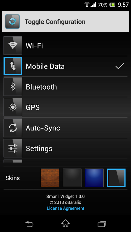 Smart Toggle Widget comes in two sizes 1x1 and 1x4 and four skins: