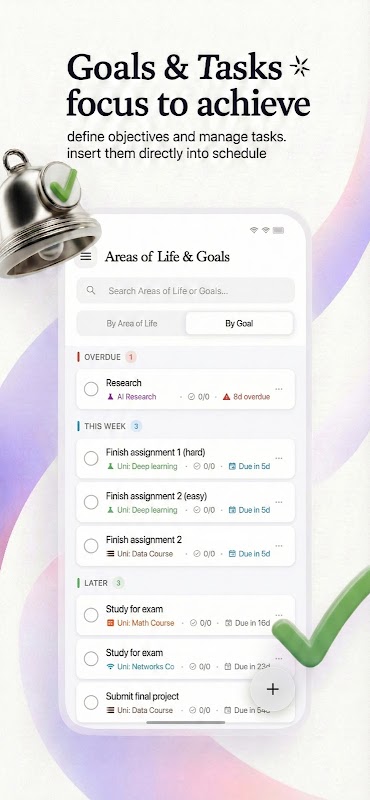 Life Balance: Organize tasks by Areas of Life (Work, Health, School) to ensure you aren't neglecting what matters.