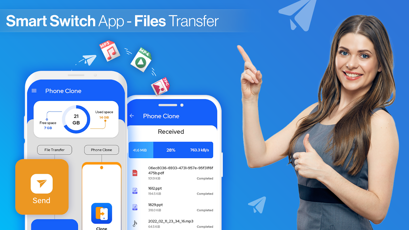 🔋 The comprehensive main menu is the most prominent part of this phone clone – data transfer app. Another perfect characteristic of smart switch app is that you can transfer your all files in seconds. All in one smart switch app comes with attractive and user-friendly interface. Our phone clone app is compatible with all android mobiles and android tablets. This clone phone app is the fastest way to move and copy your phone data from one device to another. The phone to phone transfer app has been optimized for easy to use for all users around the world.