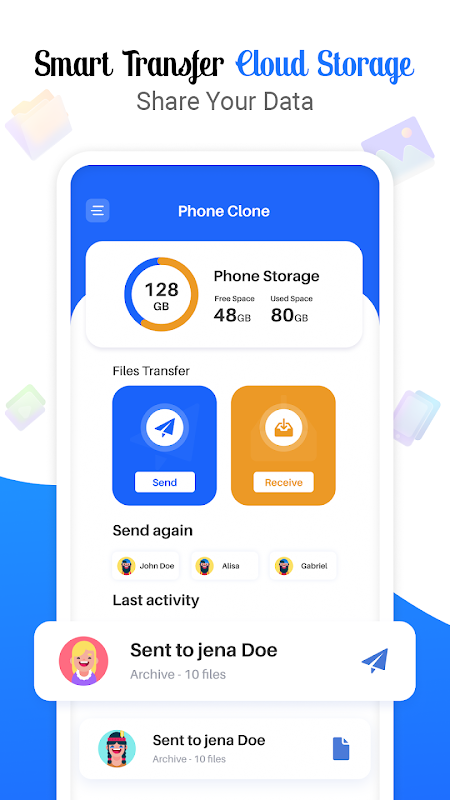 Clone Phone & Transfer Files easily with anyone. Create Data Transfer of your files to avoid Data Loss. Access your files in the future using the File Transfer & Easy share app. Share all files with a mobile transfer app instead of send anywhere separately. Data transfer is made easy with mobile transfer app.