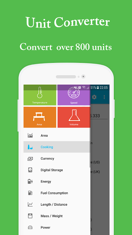 ✓ Volume: (us gallon ,imperial gallon ,us quart ,us fluid ounce ,us pints ,imperial pints ,cubic yard ,cubic foot ,cubic inch ,cubic meter ,cubic decimeter ,cubic centimeter ,cubic millimeter ,hectoliters ,liter ,deciliter ,centiliter ,milliliter)