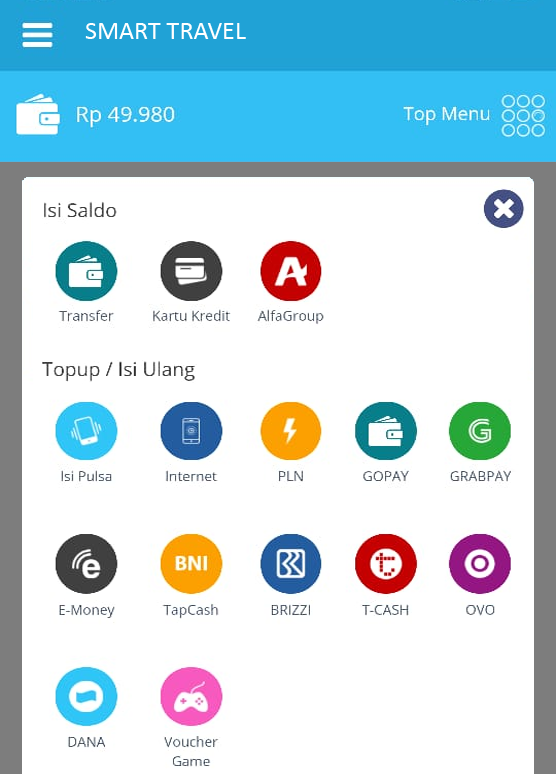 - Topup E-Money, BRIZZI, BNI TapCash, T-CASH, OVO