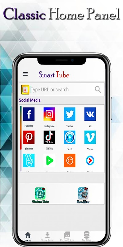Smart tube lets you download videos from Facebook, Instagram, Tiktok, Twitter, WhatsApp, Pinterest, Vimeo, Vk, Vlive, Naver, Metacafe, Tudou, Youku, Myspace, Tumblr, Liveleak, Tubidy and Dtube . Just simply tap on the video link to play, download or share it. Save videos to your gallery and watch them later and photo editor allows to best photo editor experience .