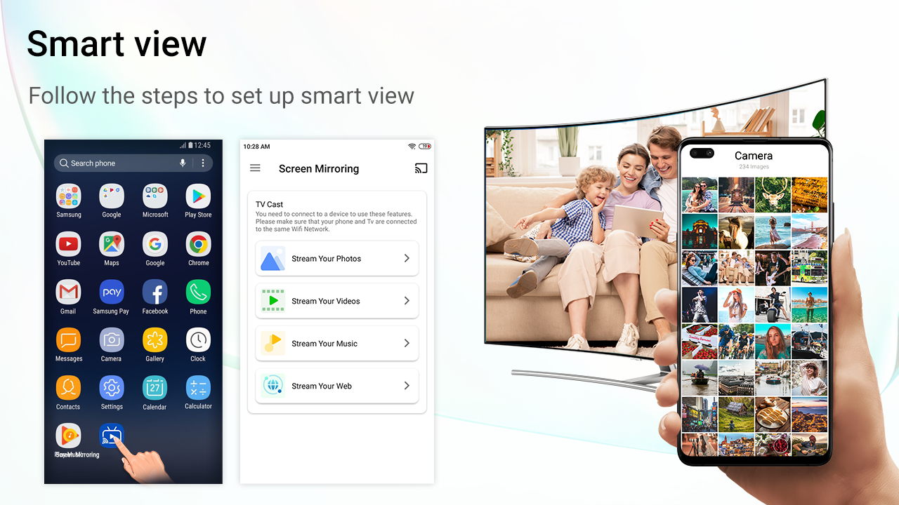 Smart View - Screen Mirroring for Smart TV mirrors your complete screen, including photos, videos, apps, games, websites and documents.
