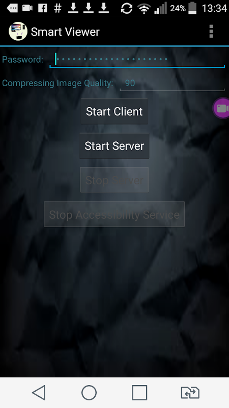 - Allow to start the app as client to view or control remotely other smartphone ( TV box or android mobile) with password to keep secret
