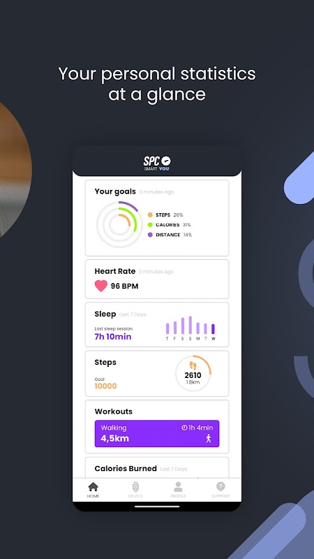 With the app, users can track their physical condition and boost their physical and mental wellbeing. Here's a sample of what the app can do once it has been linked to an SPC SMARTEE watch: