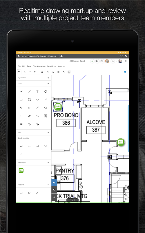• From inside the zones users can access modules and features such as Digital LEAN plan boards, CPM scheduling, View and Markup of drawings,BIM modes, 360 images & site progress photos, status work progress, create and status RFI’s , Punchlists and other field documentation , align with access to Safety features such as Safety bulletins, STA/JHA, safety incidents and more. - No matter what your device, screen size, or orientation, your experience will be optimized automatically for maximum efficiency and increased productivity.