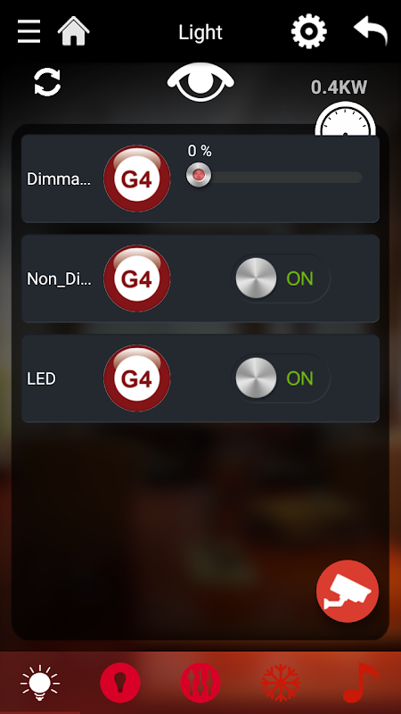 This application Enables the complete control of Lighting, Dimming, TV, DVD, Radio, Audio In etc.