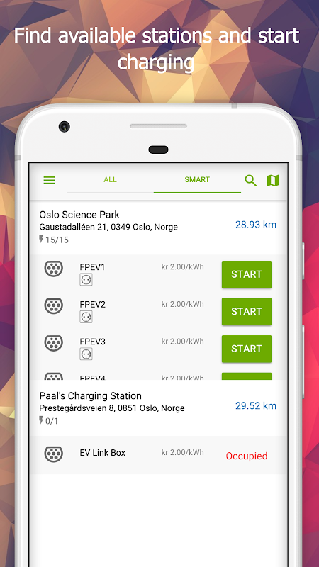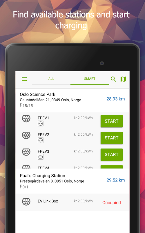 - Automatic filtering of charging stations