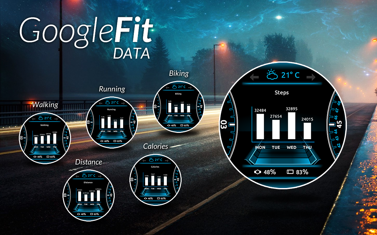 ✔ Daily steps with graph (click in a center to switch between graphs)