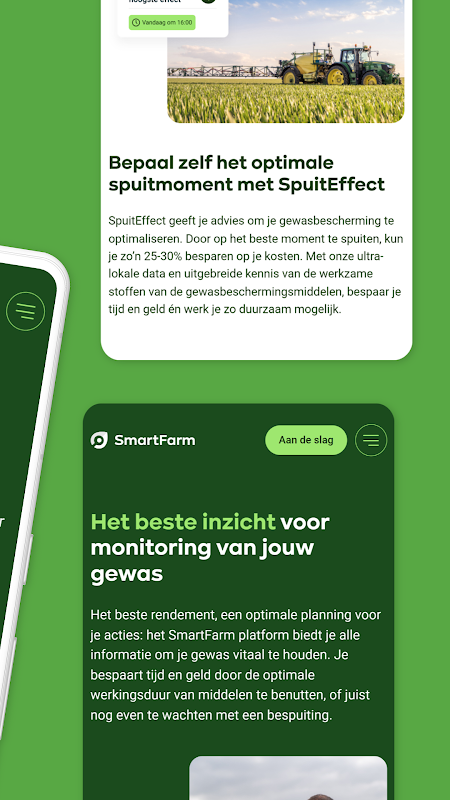 SmartFarm is the innovative app designed for growers and agricultural advisors aimed at keeping crops healthy. Our tool enables you to effectively respond to disease pressure and determine the optimal timing for applying crop protection products.