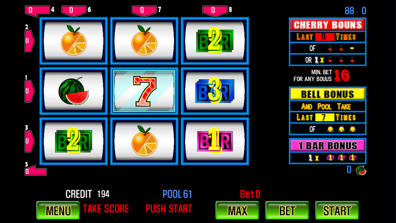 (Max.bet is 96 , below 16 bet you can get cherry bonus only)