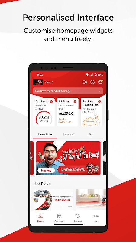 - All-in-one account overview; check bills, data usage and service plan details with one click!