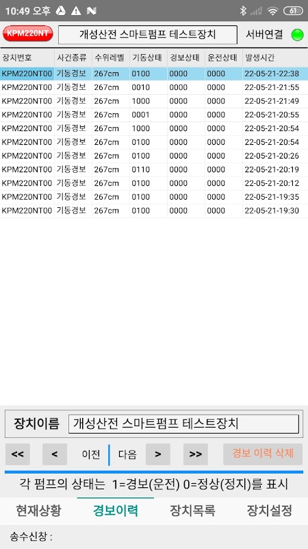 배수 펌프의 고장 유무를 체크하기 위해 정기적으로 시험 운전을 행하고 상위 시스템의 에러를 검출하는 모듈과 서버를 통해 데이터를 교환하는 스마트펌프 프로그램, [스마트 펌프]