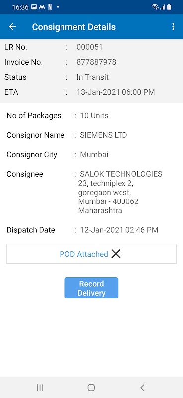 3. The Dealer can see delivered consignments details and view uploaded POD