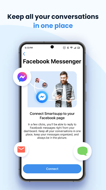 Have all your chats in one place whether it’s an email, Facebook Messenger or your website.