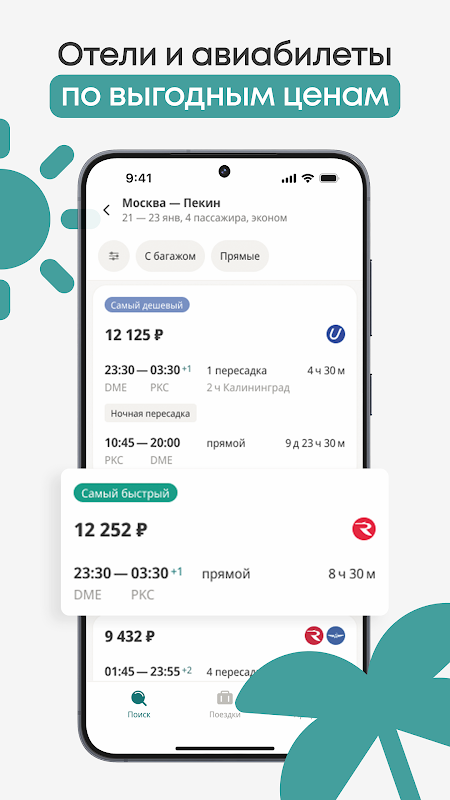 A wide selection of flights: the partner network includes more than 500 Russian and international airlines.