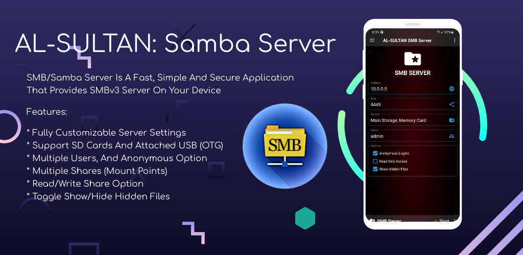 SMB/Samba Server Is A Fast, Simple And Secure Application That Provides SMBv3 Server On Your Device