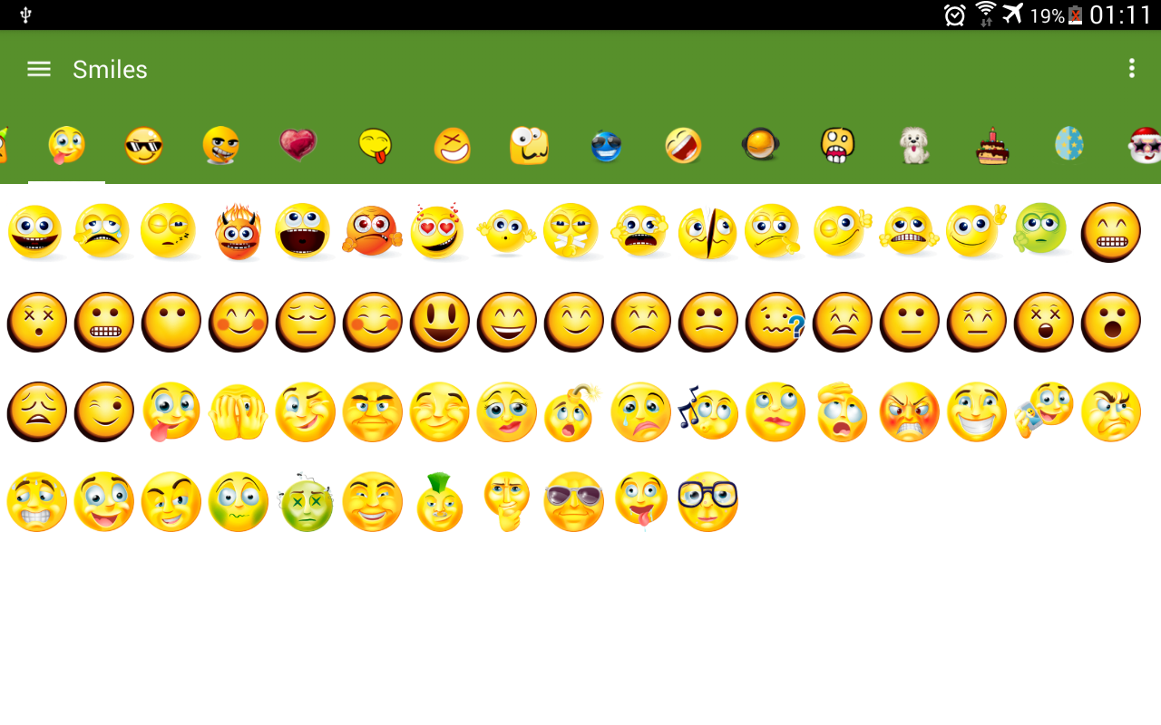 Send quickly big and beautiful Smiles for all your family and friends in applications such as WhatsApp ™.