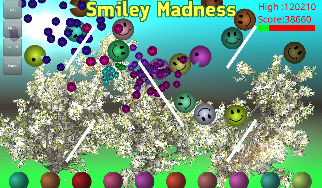 Presented with stunning retro game play an outstanding physics system and an interesting Finnish storyline. Smileys fall from the heavens where the idea is to click them before they get to the bottom of the screen. If the Smileys fall on your fruit at the bottom they will consume it. Beware of the munching Smiley from eating all of your fruit. The game has hours of addictive entertainment with catchy sound effects and spectacular seasons.