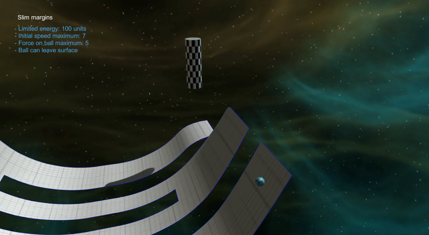 A unique ball-rolling game based on curved surfaces and strategic physics.