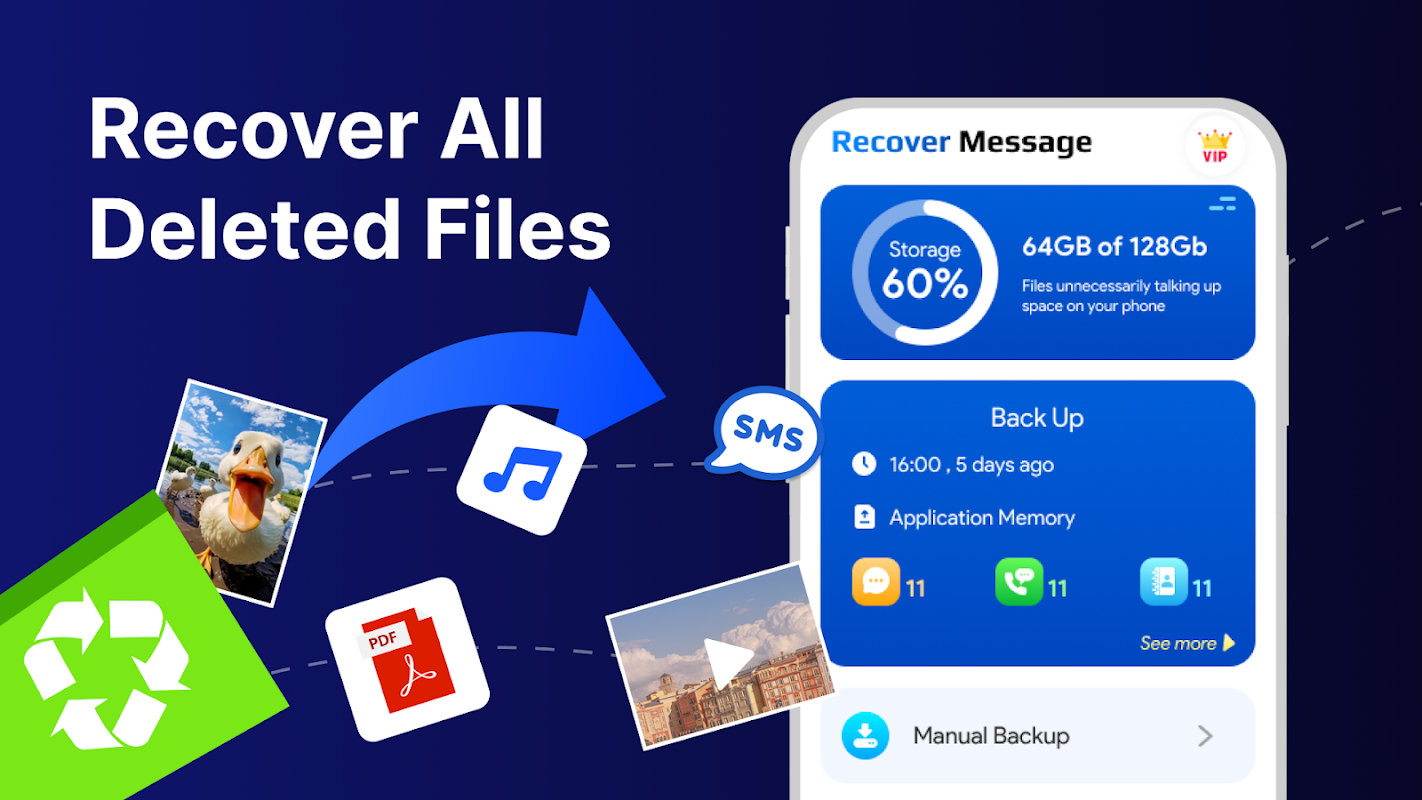 🔄 Complete Data recovery: recover deleted videos, audios, video recovery, file recovery, document recovery app contacts, etc. in just a few steps.
