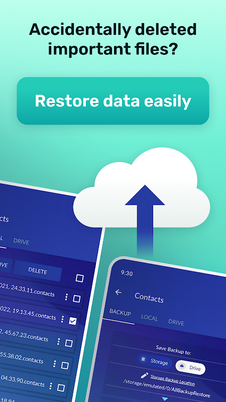 Text messages, Apps, Contacts, SMS, Call Logs, and Calendars to your Storage and Drive.