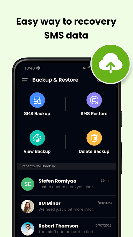 Reliability: Count on the SMS Backup & Restore app for a trustworthy solution to manage your SMS data securely.