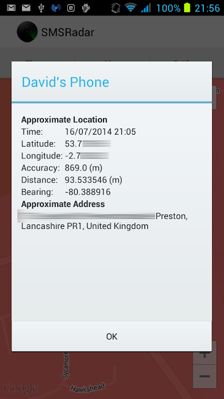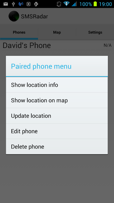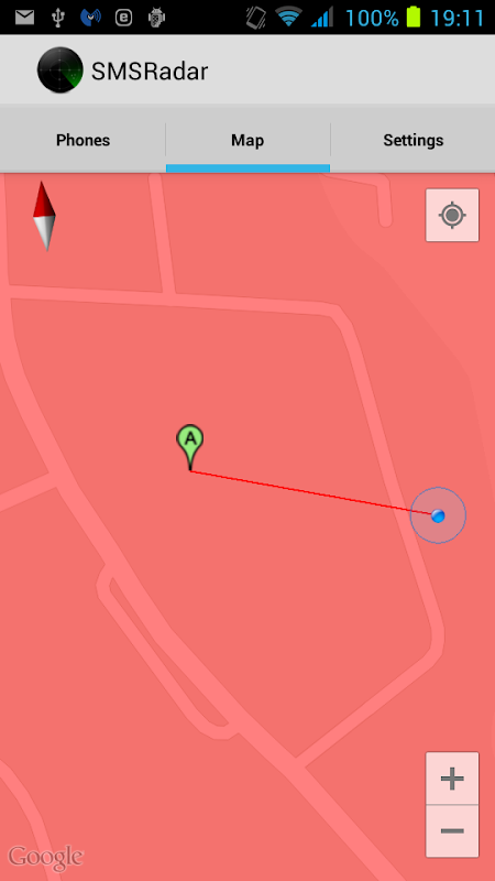 SMS Radar allows you to monitor the location of paired phones.