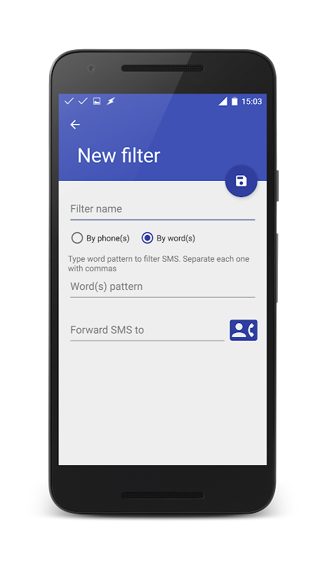 - Forward SMS by any word filter to any number(s);