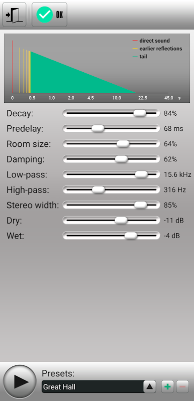 - applying some filters and effects to your audio (graphic and parametric equalizers, phaser, flanger, pitch shifter, reverb, lowpass and highpass filter etc.);