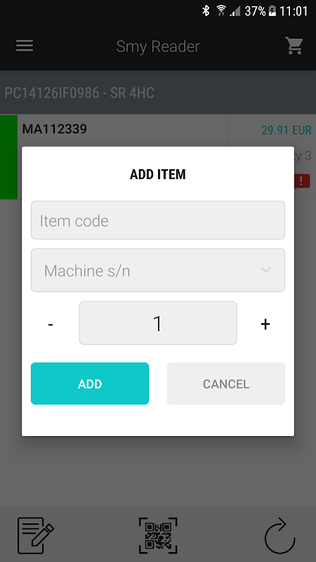 Smigroup app for mobile spare parts request.