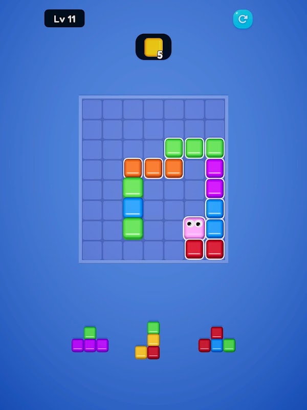 Match 5 or more of the same color inside the snake to blast them away and clear space for more snacks. It’s a brain-teasing blend of puzzle strategy and satisfying chain reactions!