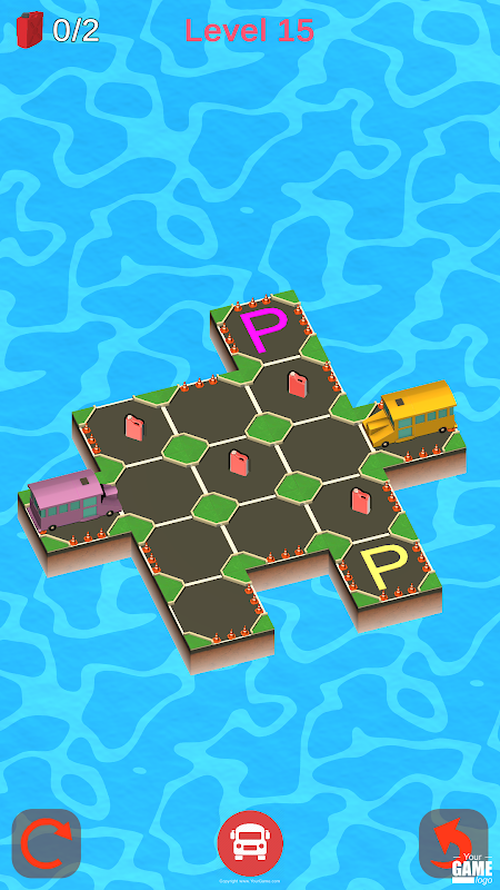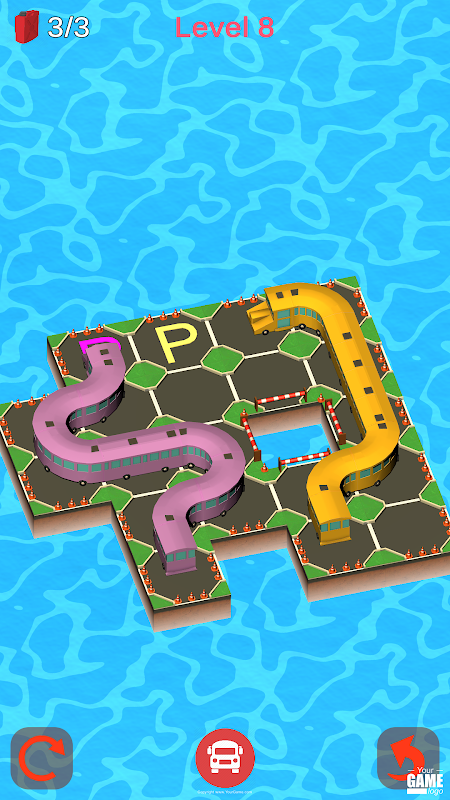 Use buttons to replay level, cancel last turn or to change the chosen bus