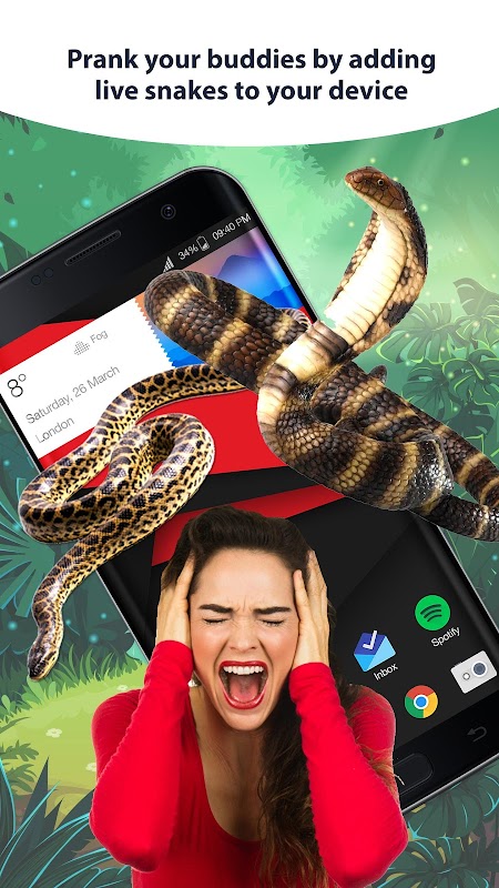 Snake on screen scary joke prank with our snake in phone funny joke app