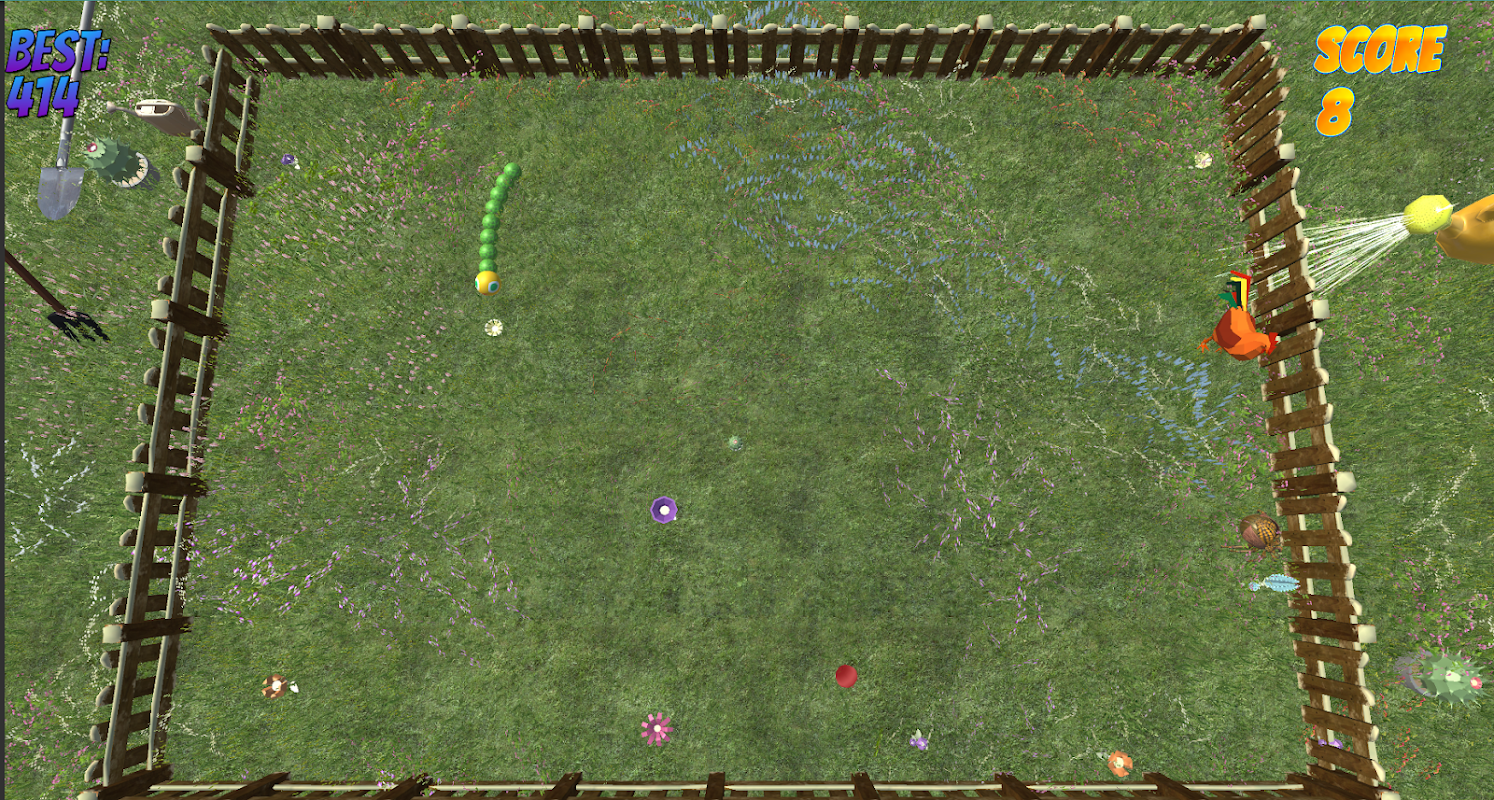 Move around the field and eat food to grow, but be careful and don't hit your tail as it grows.