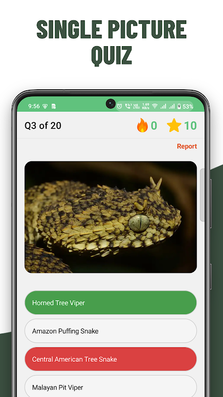 Are you fascinated by snakes? Can you identify a Horned Tree Viper or a Mangrove Snake just by looking at their pictures? Whether you’re a herpetology enthusiast, a wildlife lover, or just curious about the world’s most unique reptiles, Snake Quiz is the perfect app to test your knowledge and learn something new every day!
