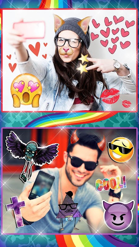 There are many stickers apps which offer many different and interesting “filters for pictures”. This edit photo sticker app is the best as it offers unique and very unusual snappy photo filters stickers 2018. Download this app and you will feel like a pro photographer who can make interesting stickers for pictures with cat ears, eyes, and nose, rabbit face camera, snappy doggy face or with manga eyes. Edit photos like a pro and enjoy your stickers!