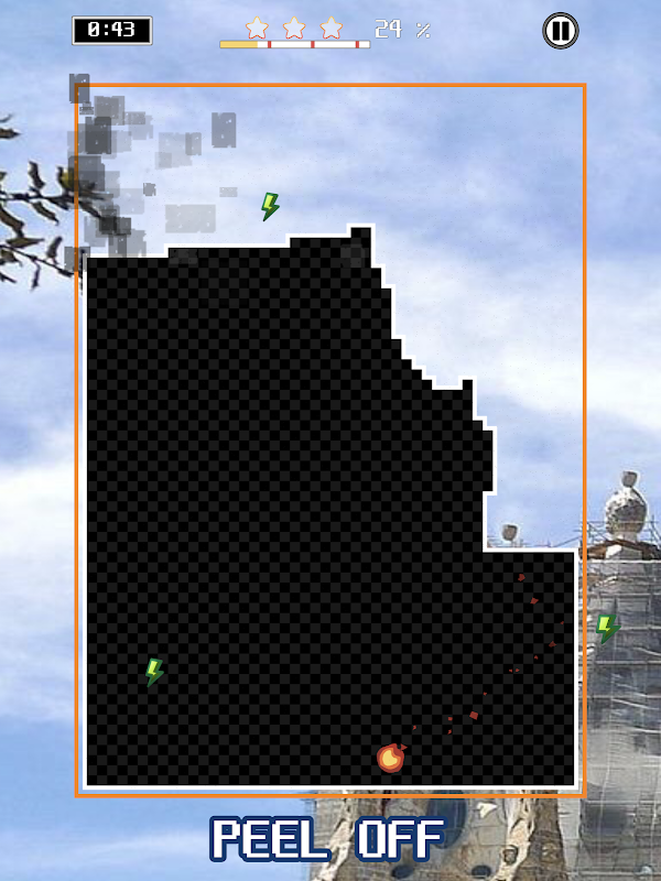 If the cutting is completed without being detected by the fire demon, the board is peeled off to reveal a nice background.