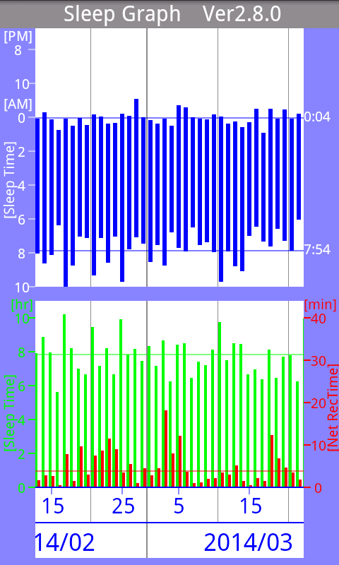 This application is a PCM (WAV) format sound recorder intended to capture sounds (snoring, talking) while sleeping, but it can also be used for other purposes such as recording a voice memo.