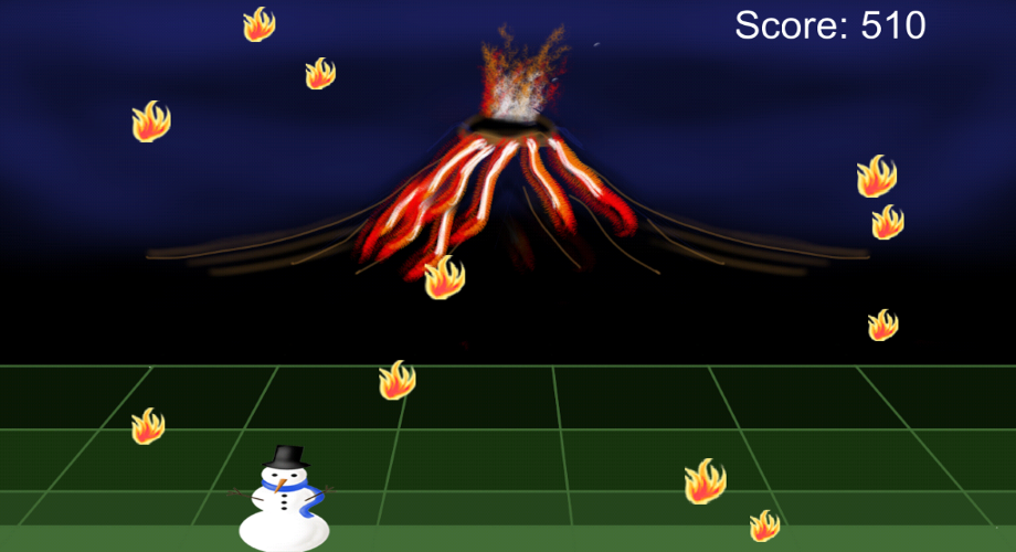 A simple arcade game where you have to control Snowy and avoid getting hit by the mass of flames, falling down. Or do you want Snowy to melt?