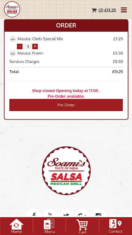 Once downloaded it will enable you to order food from our extensive Soamis Salsa menu.