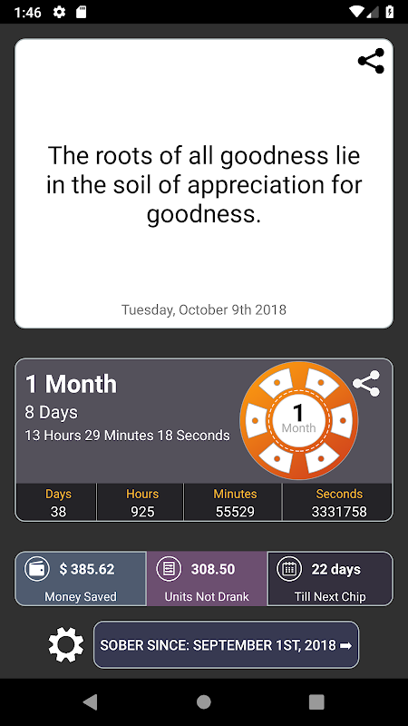 Keep track of your sobriety date and the number of days you are sober with this simple free app!