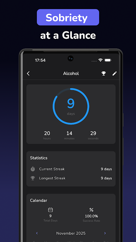 Start your sober journey today with a simple, distraction-free recovery tracker designed to help you stay clean, maintain your streak, and never lose sight of why you started.