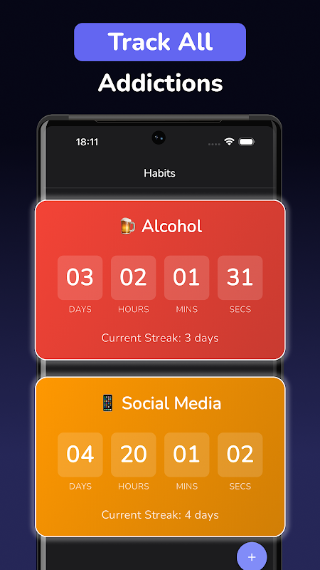 Breaking free from bad habits and staying clean is hard — but you're not alone. Our recovery app helps you maintain your sober streak, track your clean days, and build a better you. Whether you're in recovery from smoking, sugar, alcohol, self harm, or anything in between — we've got your back.