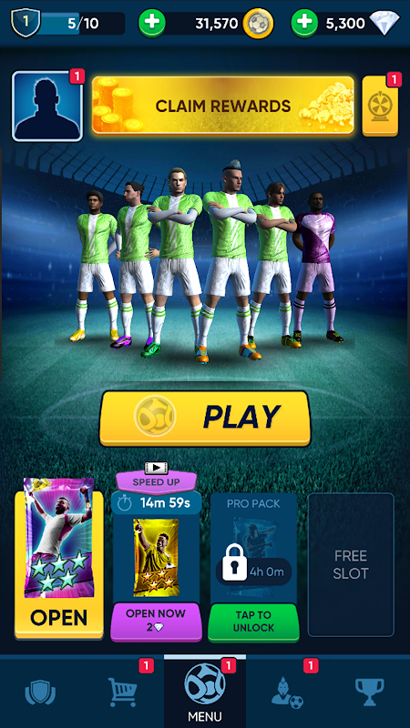 Discover the soccer star shop with special equipment for your team. Unlock balls, change your dress or goalkeeper gloves and collect other unique kits.