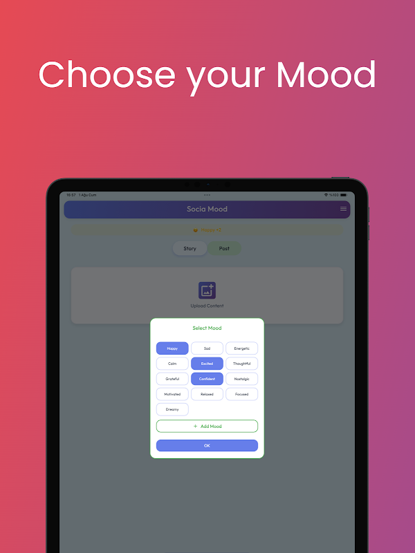 🎭 Mood Selection: Happy, sad, energetic, calm, excited, thoughtful, grateful, and more